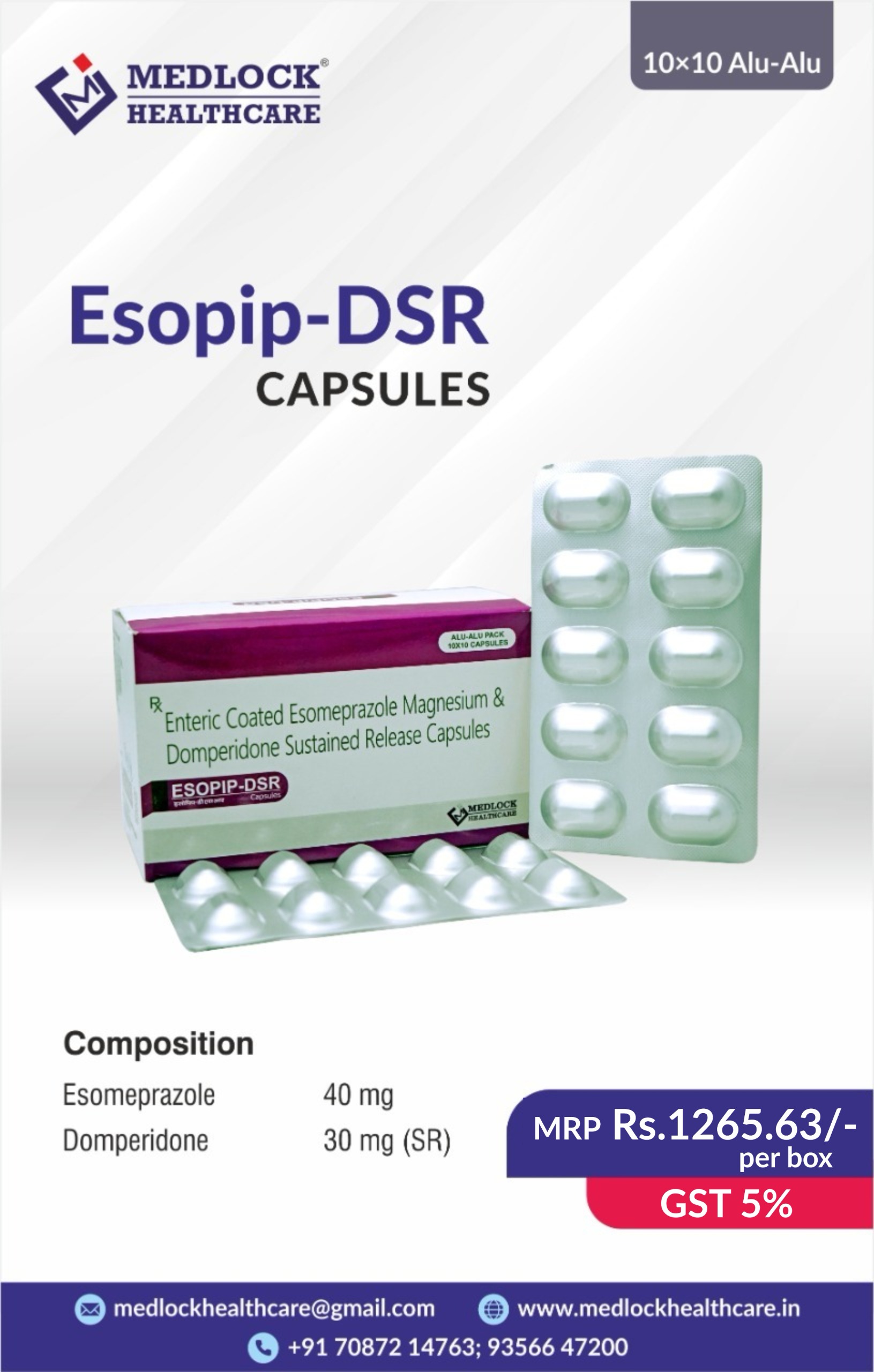 Composition: Esomeprazole 40 mg with Domperidone 30mg (SR)Pellets