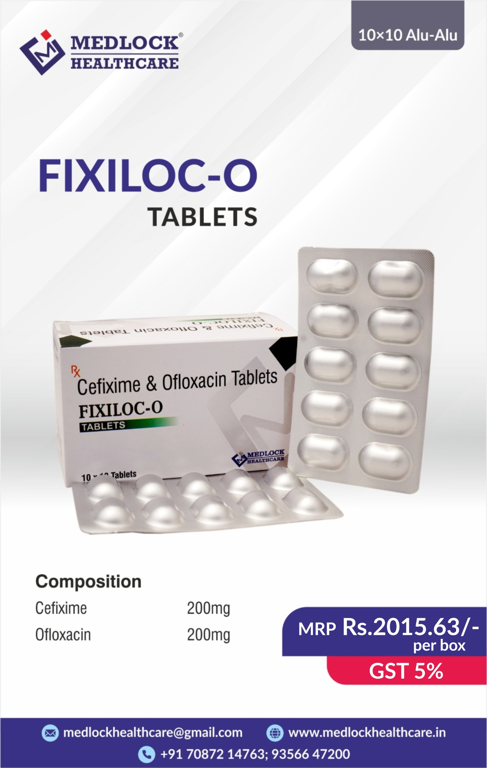Cefixime + Ofloxacin Tablets manufactured by Medlock Healthcare is an effective medicine that is prescribed when suffering from bacterial infections. The aid works effectively against all the infections caused by bacteria but not against viruses. This may help in the treatment of Urinary tract infections and also provides a cure for STDs that is sexually transmitted diseases such as chlamydia and gonorrhea. The medicine provides benefits to the patients by reducing the number of infected cells which therefore responsibly provides relief to the health and increases the immunity of the body too.